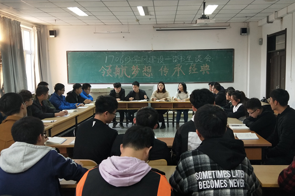 170603班团支部于11月12日在南湖校区科研楼2620室开展了“领航梦想,传承经典”主题读书座谈会。此次座谈会由团支部书记刘香池主持,170603班团支部全体成员参加了此次座谈会。