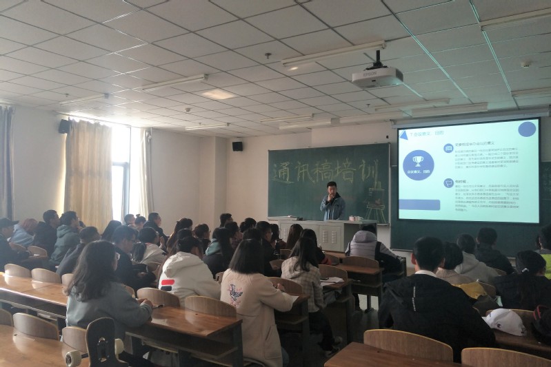 团委于11月3日在北湖校区主楼1520教室举行通讯稿写作培训会,本次培训由团委宣传部副部长于添政主讲。2018级团委全体成员及各班团支部委员均参加了本次培训。