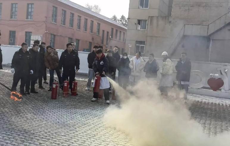资产处和安全处现场指导学生,如遇火情,如何保证安全、快速、有序逃生;面临可控火情时,第一时间如何正确使用灭火器、灭火毯有效灭火;详细讲解了灭火和逃生时需要注意的细节,并让同学们进行了实操演练。